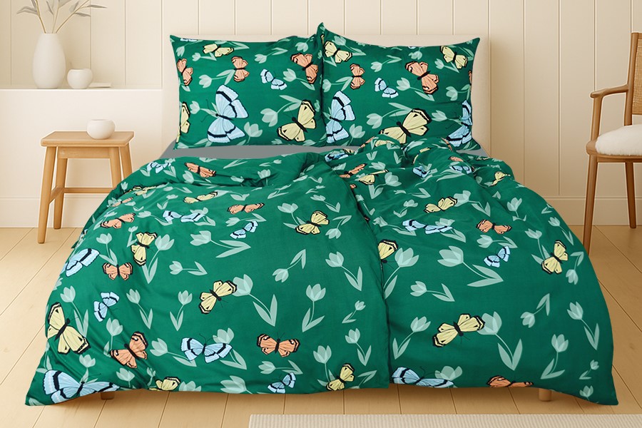 4dielne obliečky z mikrovlákna s bavlneným efektom sú ideálne rodinné balenie práve pre vašu spálňu. Lôžkovina má motív farebných motýľov na zelenom podklade. Obliečky sú vyrobené z mikrovlákna, ktoré má špeciálny bavlnený efekt, takže je mäkké, protišmykové, rýchloschnúci, ľahké, a napriek tomu pevné. Sú tiež skvelou voľbou pre alergikov, pretože sú odolné voči baktériám a roztočom. Obliečky majú praktické zapínanie na zips. Svoju posteľ môžete dokonale zladiť s froté alebo jersey prestieradlami z našej ponuky, dostupné sú v mnohých odtieňoch.