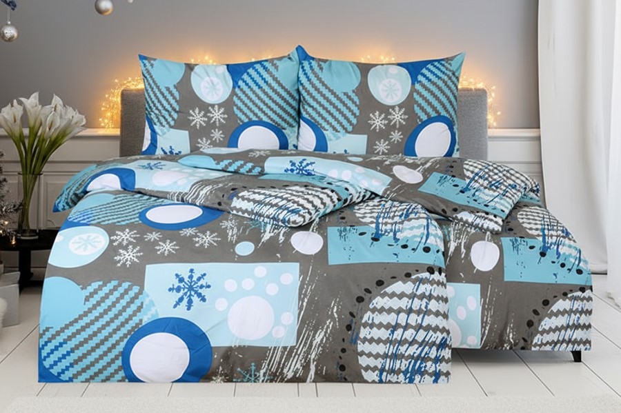 Obliečky z mikrosaténu májú abstraktný zimný motív v tyrkysových tónoch na tmavo šedom podklade. Špeciálne mikrovlákno so saténovou úpravou si zamilujete pre jeho skvelé vlastnosti! Na dotyk je veľmi jemné a pripomína hodváb. Napriek tomu je odolné, rýchloschnúce a nekrčivé - nie je teda potrebné ho žehliť! Mikrovlákno je antibakteriálne a je najlepšou voľbou pre alergikov. Výhodou tohto umelého vlákna je aj jeho vysoká savosť, vďaka nemu je možné docieliť žiarivé odtiene, ktoré vydržia. Obliečky majú praktické zapínanie na zips.